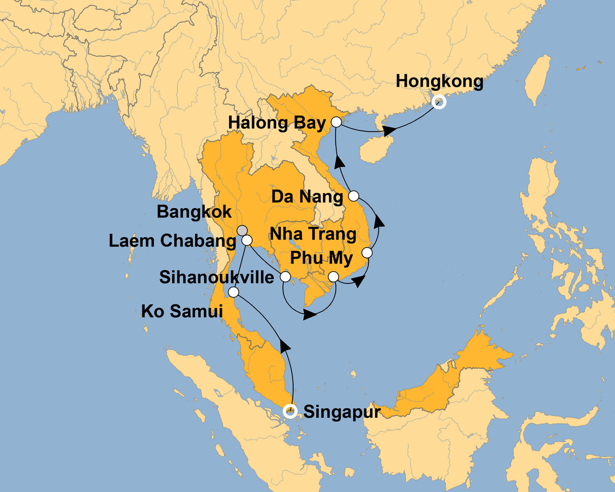Abgerundet wird die Kreuzfahrt durch ein liebevoll zusammengestelltes Aussichtsprogramm in Singapur und in Hong Kong.